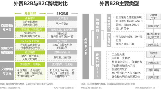 定义:外贸B2B是企业与企业之间进行跨国商品或服务交易,交易双方都是商家,购买方采购产品或服务用于自身的生产、再销售或者其他商业用途。相对与2C跨境贸易,外贸B2B具有规模大、周期长、专业性强的特点,营销方式和客户管理也有显著差异。